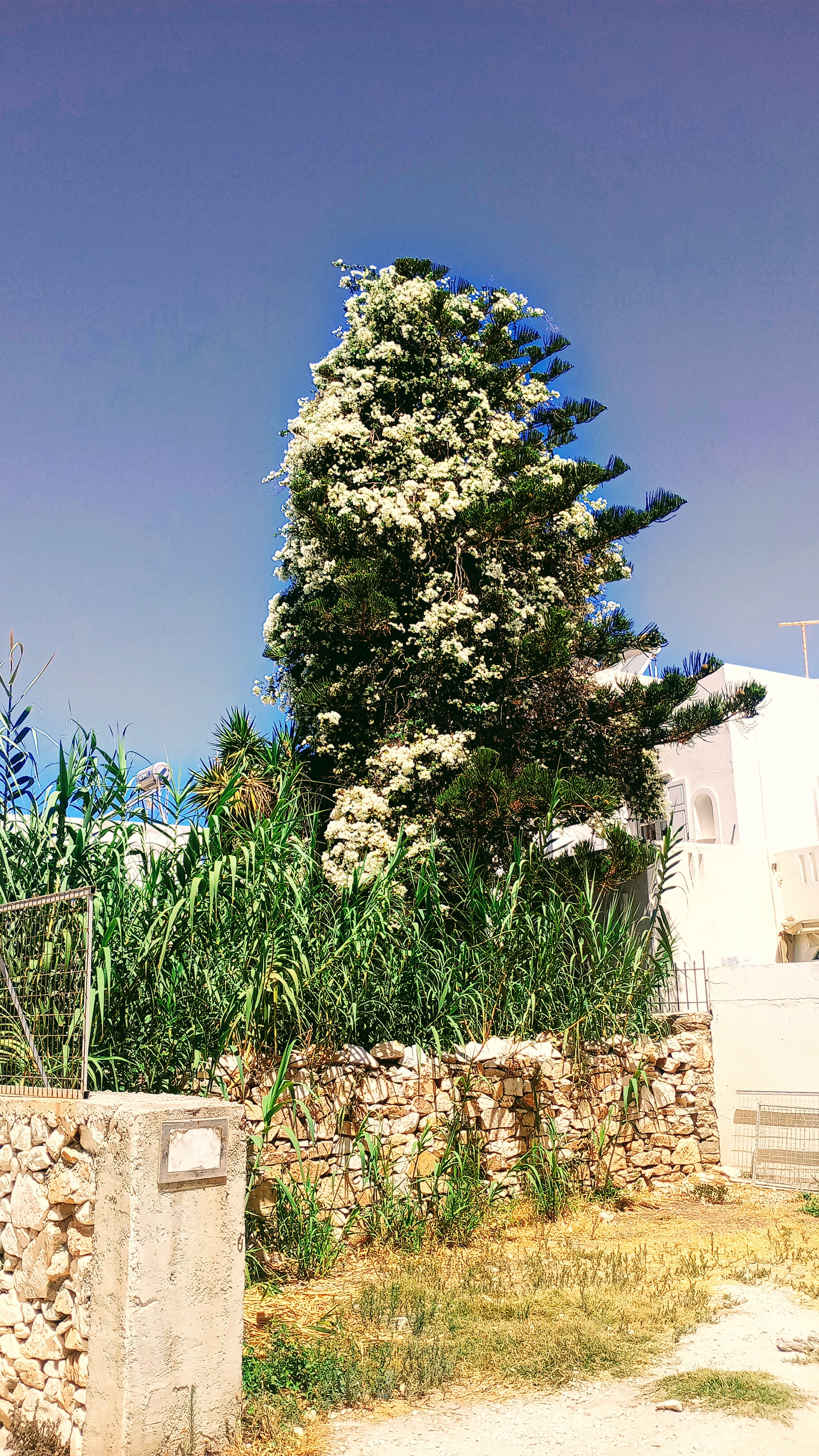 On my walk to the minimarket, I pass this monkey puzzle tree entangled with a white bougainvillea. The two plants must really like each other as they’ve been together for about 20 years. Perfect partners because the bougainvillea needs a backbone to sustain it and the tree needs some company and visual brio. They’ve adapted to one another and live in harmony.
