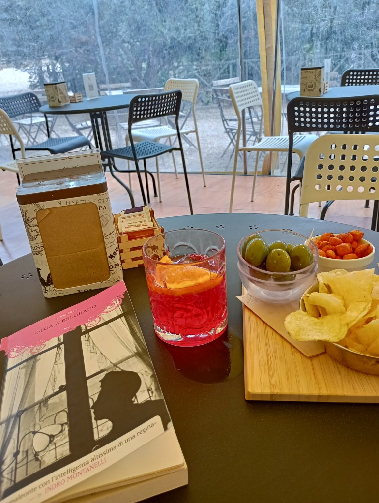 Since I was alone, I took a book. You know, an old woman drinking Campari late in the morning could give the wrong impression. But if you are reading something other than a smart phone, it gives your presence a totally different vibe.