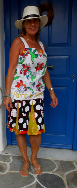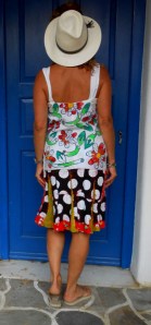 This dress was made from secondhand clothing found at the San Lorenzo outdoor market in Rome. The top part was a boring white summer dress that I gave some color to by transforming it into a pseudo-paint by number kit.