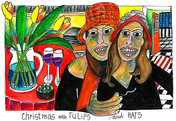 That year they’d decided on fondue for Christmas lunch. But before dunking their forks into the bubbling hot cheese, they put their hats on and danced around the tulips. It made them feel silly and delightfully dizzy and like children again. Because Christmas is for kids, they decided to play.